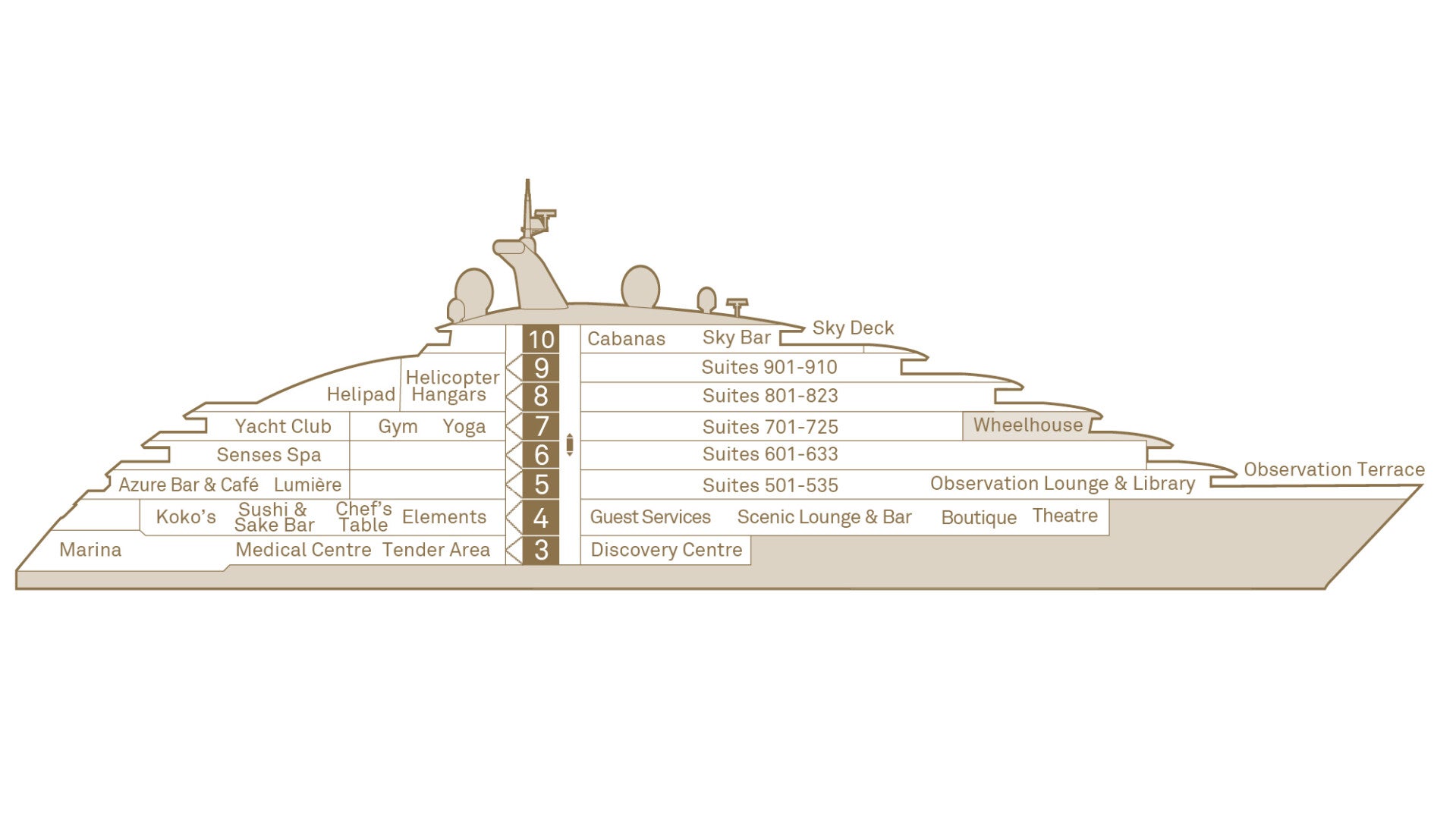 Die Scenic Eclipse vereint Luxus und Abenteuer wie kein anderes Schiff. Maximal 228 Gäste genießen großzügige Suiten mit privater Veranda und persönlichem Butler-Service. Zwei Helikopter, ein eigenes U-Boot, stilvolle Lounges, preisgekrönte Restaurants und ein exklusiver Spa eröffnen dir unvergessliche Möglichkeiten. Ob Polarregion oder Karibik – mit der Scenic Eclipse reist du auf höchstem Niveau und entdeckst die Welt völlig neu.